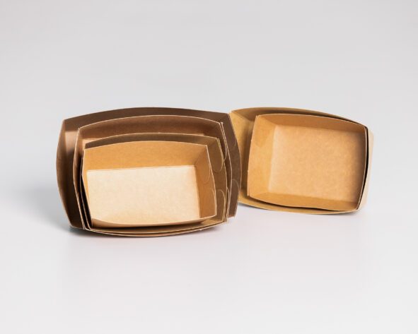 Barquettes écologiques pour snacks, idéales pour emballer des sandwichs avec des chips et autres snacks.