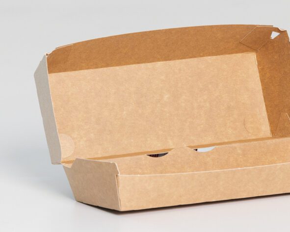 Deze kartonnen hotdogboxen zijn perfect om hotdogs milieuvriendelijk te verpakken.